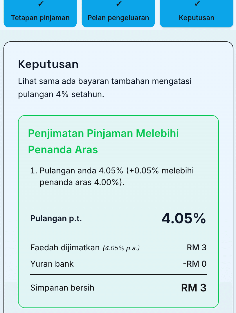 - Penanda Aras Pulangan: Masukkan kadar faedah HYSA yang kompetitif, seperti 4% s.k. RYT Bank.